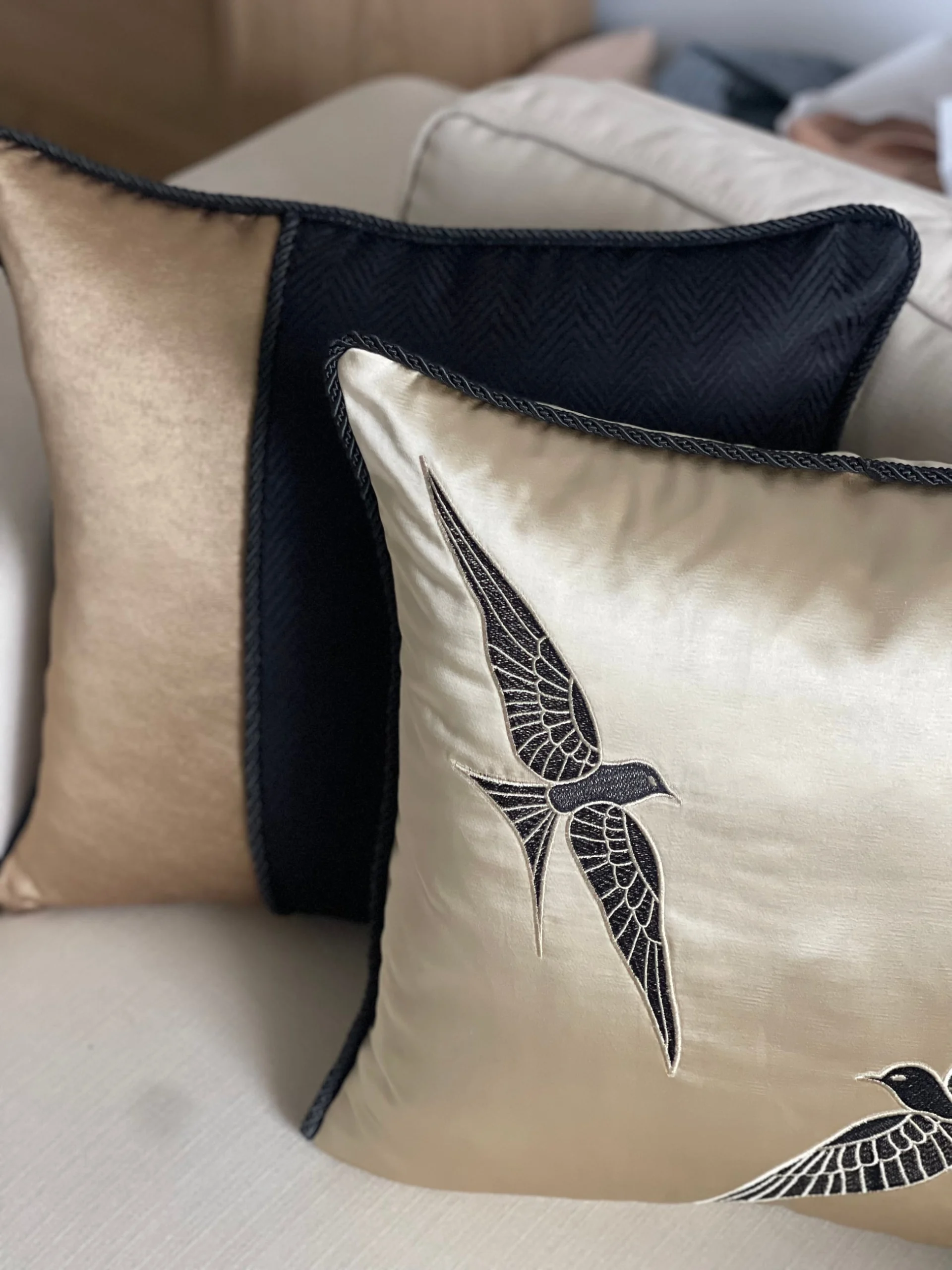 Gold Kırlangıç Nakış Yastık Kılıfı