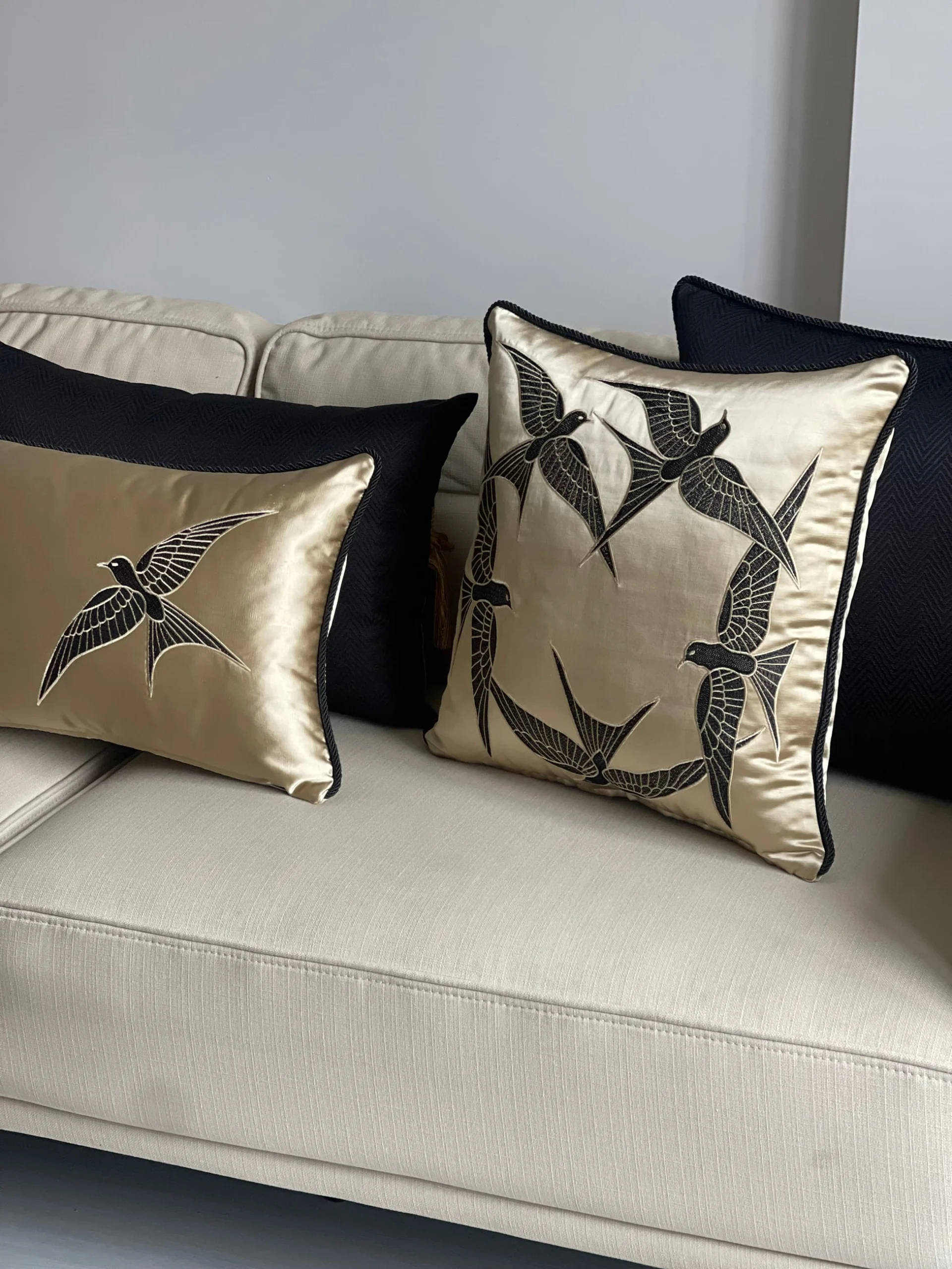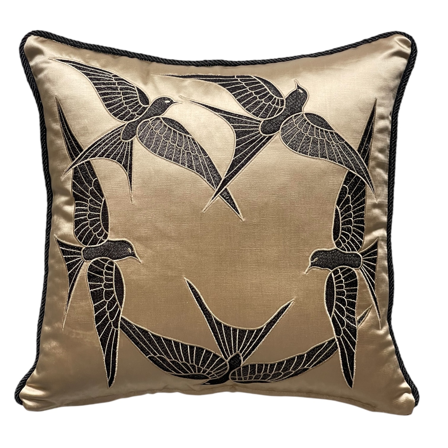 Gold Kırlangıç Yuvarlak Nakışlı Yastık Kılıfı 50*50 cm