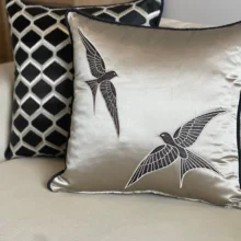 Chalet Gri Ekose Kuş Nakışlı Yastık Kılıfı 45*45 cm Yeni Yıl
