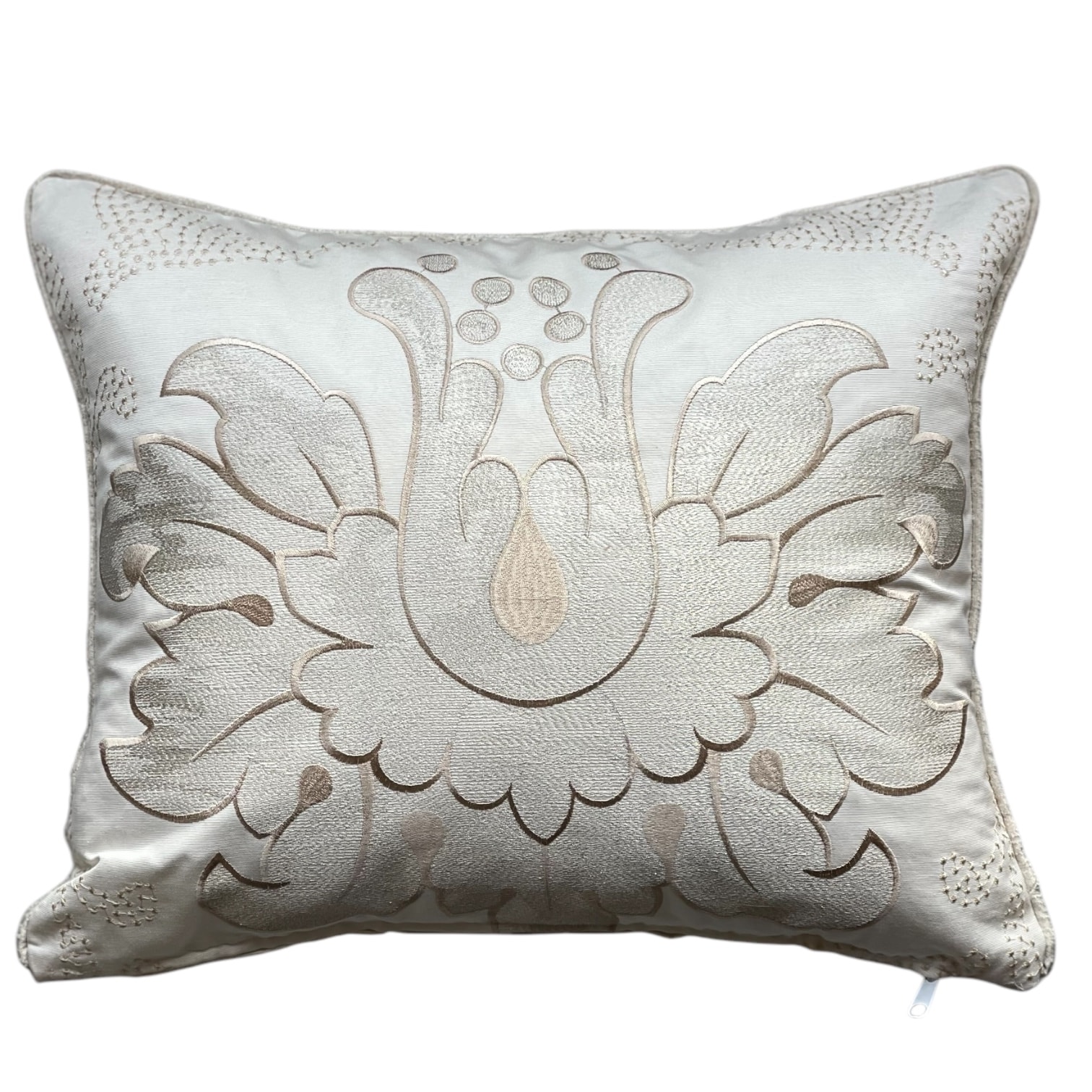 Krem Damsk Desen Nakışlı Yastık Kılıfı