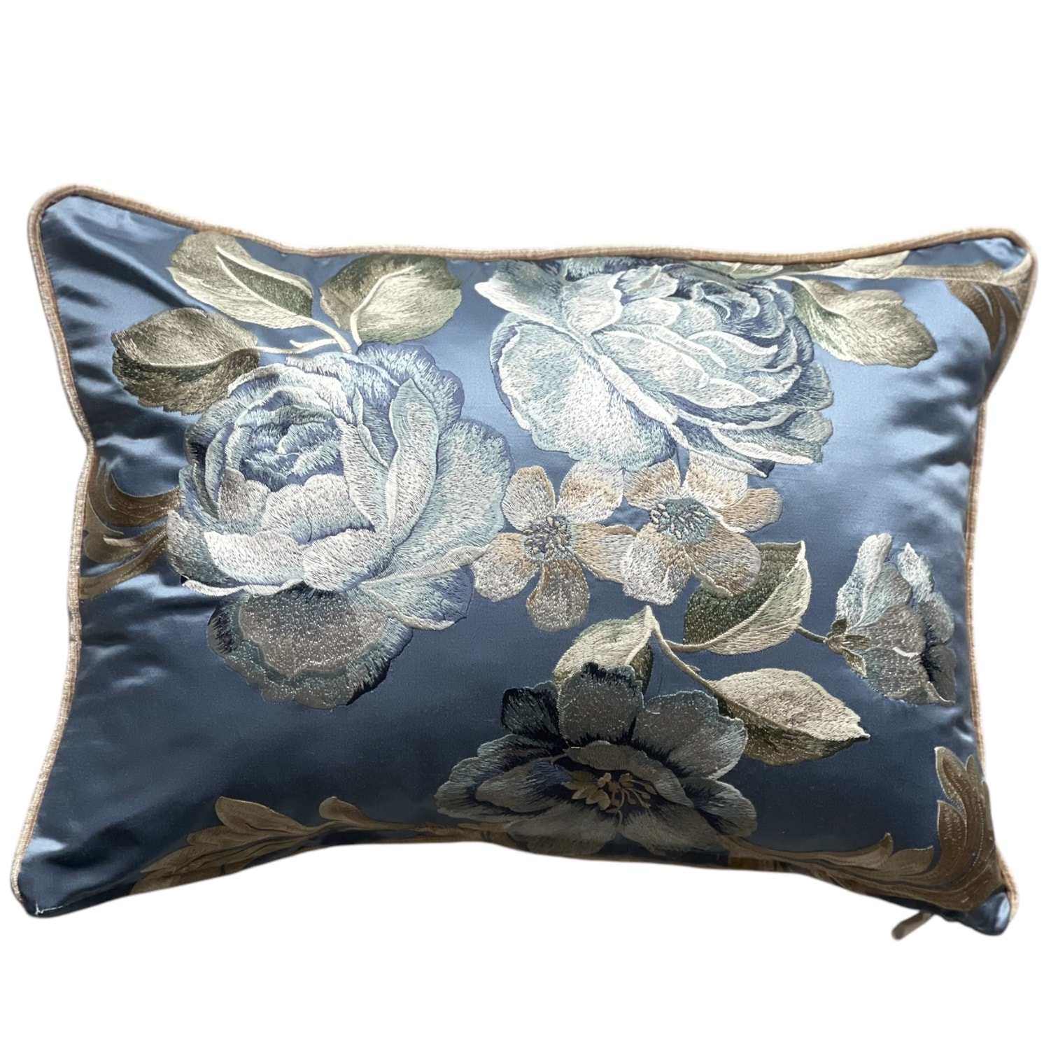 Mavi Şakayık Nakışlı Yastık Kılıfı