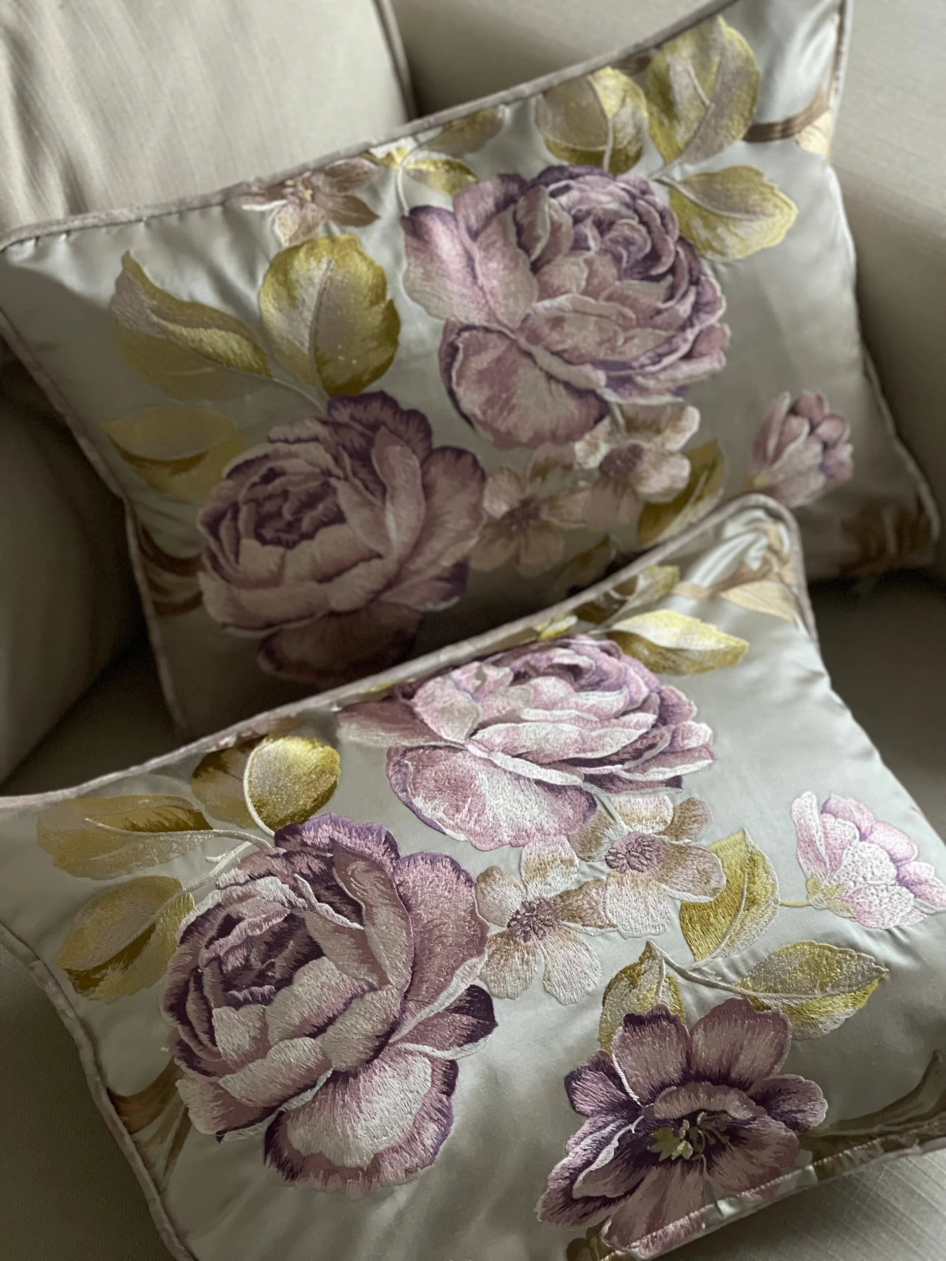 Pudra Kumaş Şakayık Nakışlı 2'li Yastık Kılıfı SetiPudra Kumaş Şakayık Nakışlı 2’li Yastık Kılıfı Seti